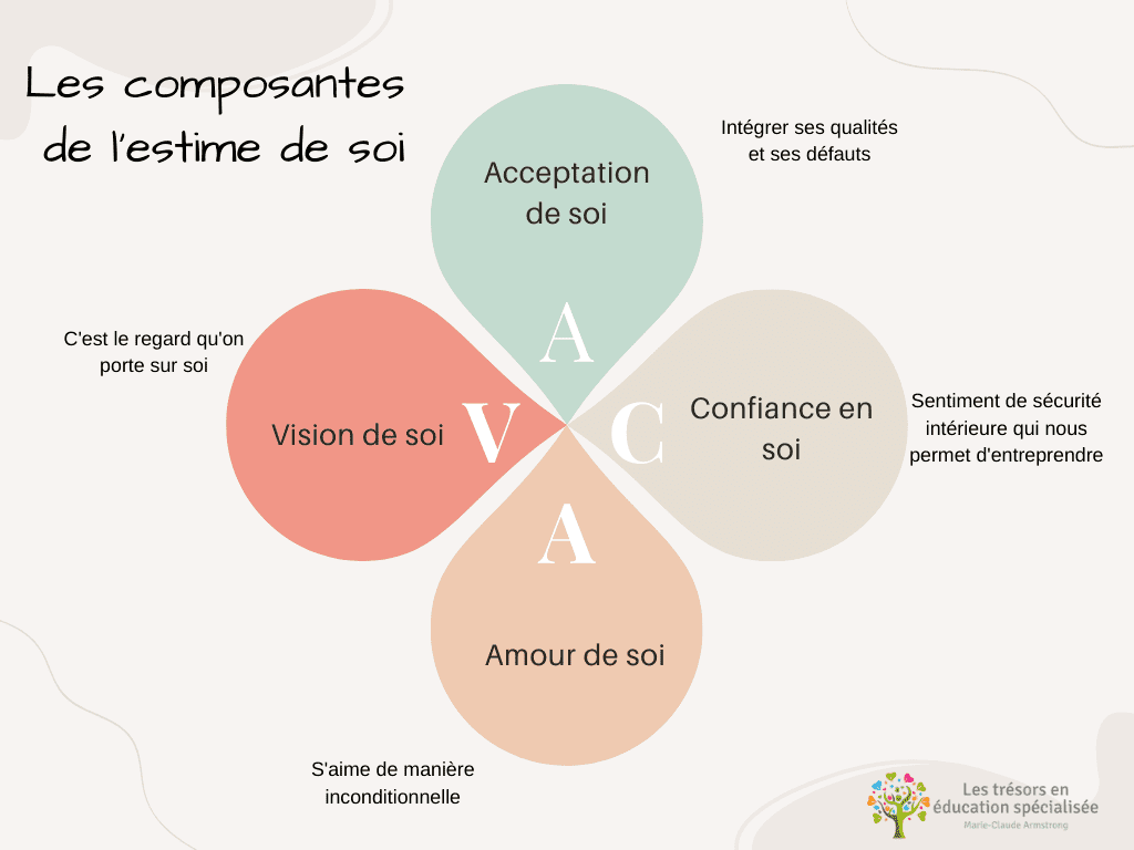 Ces composantes interagissent et se renforcent mutuellement, contribuant à une estime de soi solide et équilibrée.